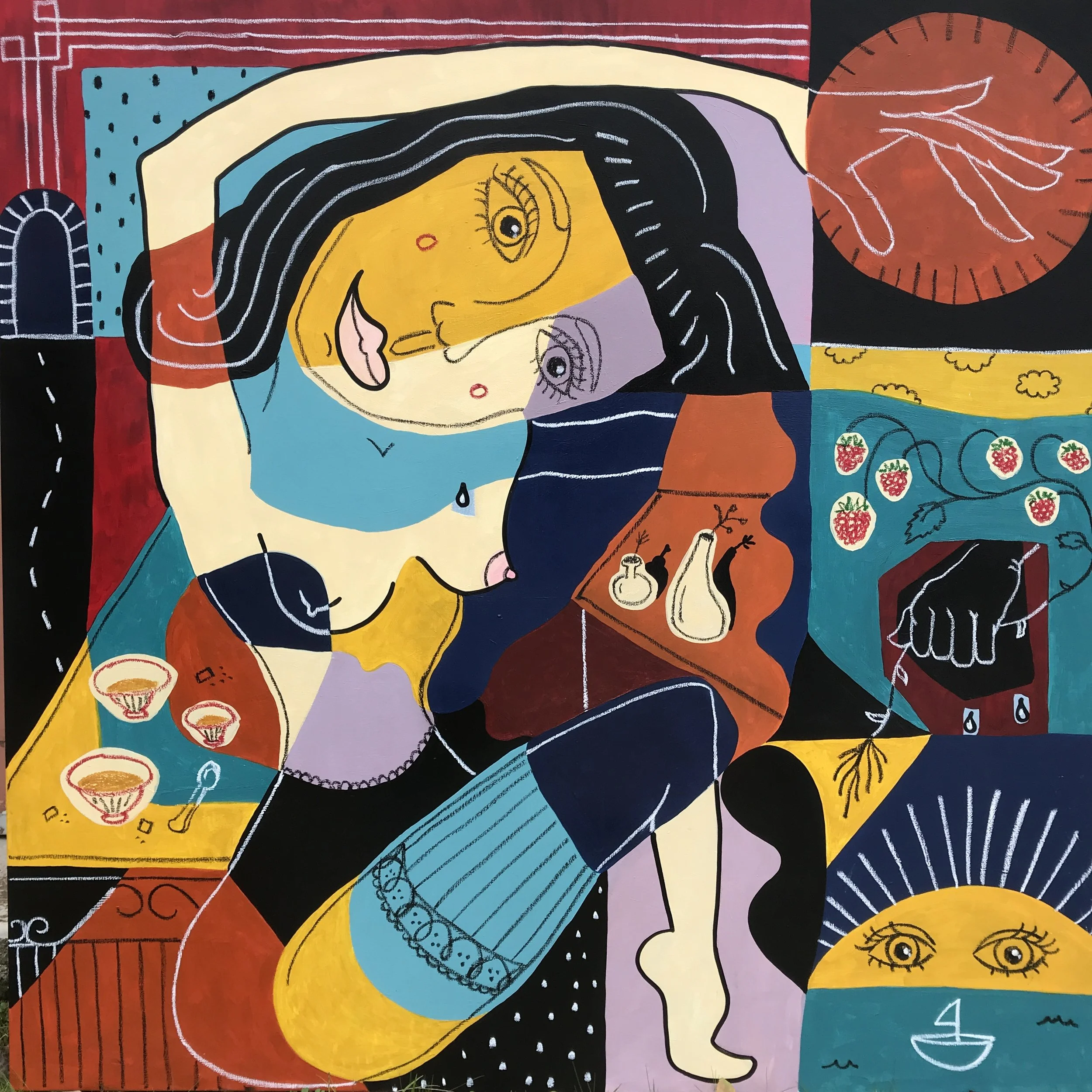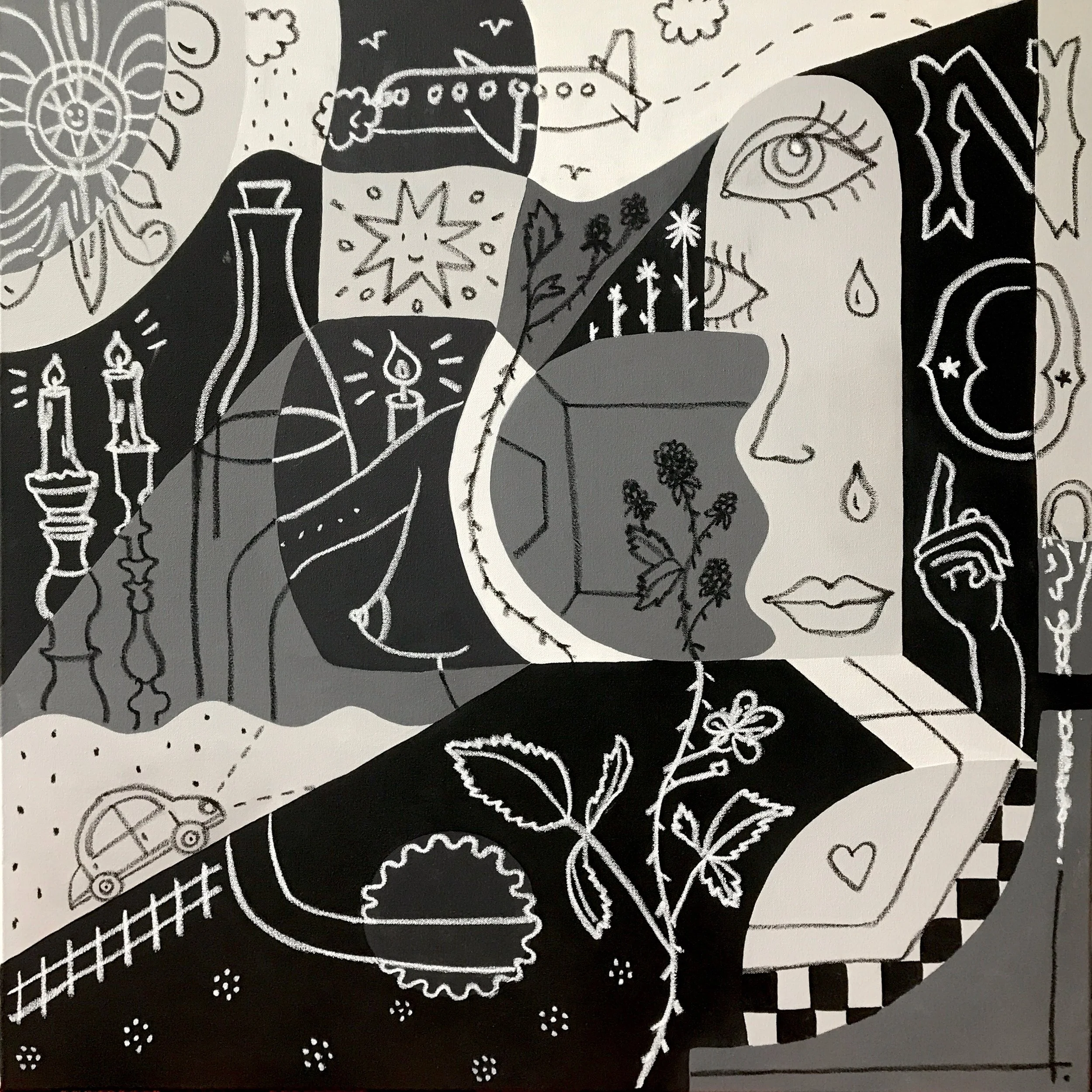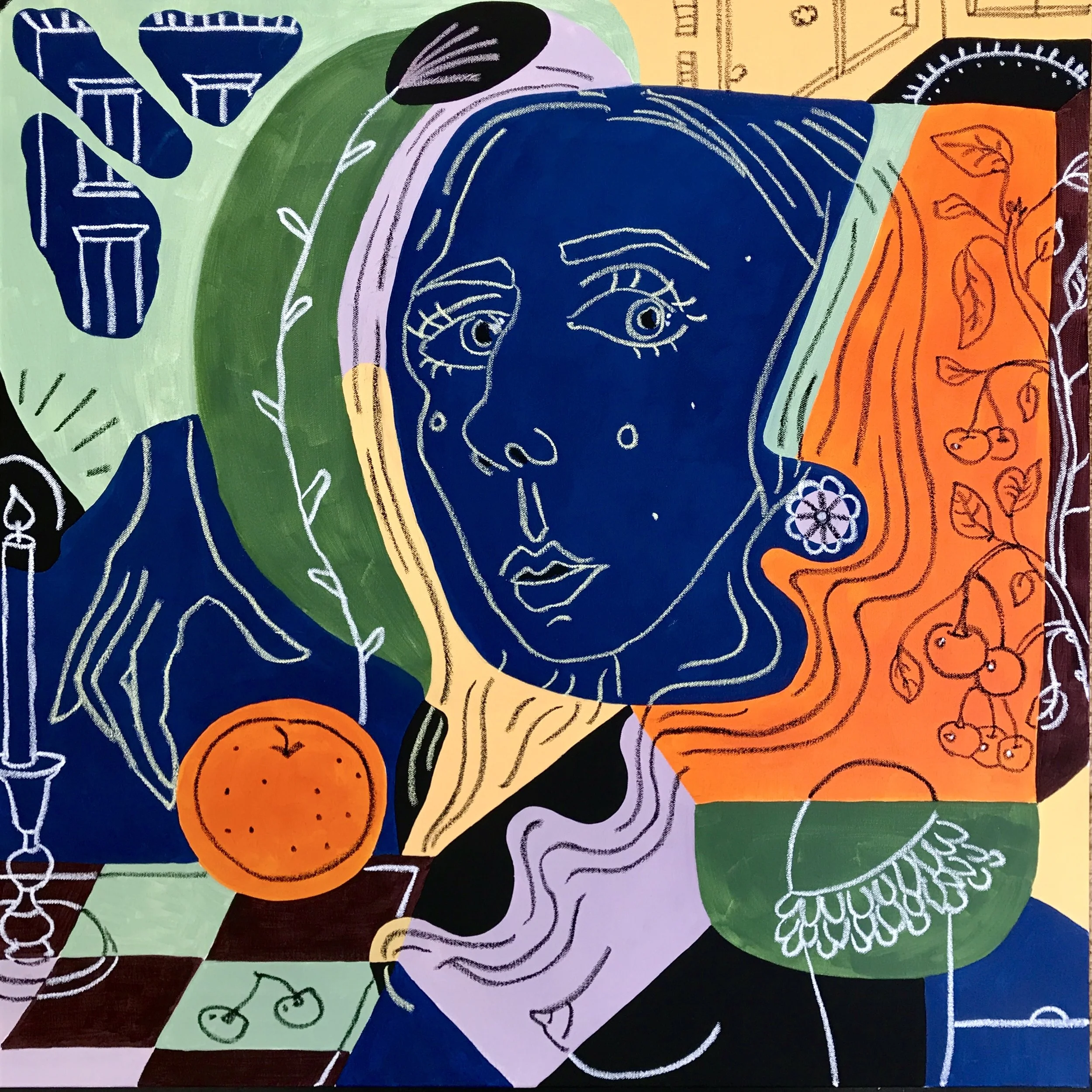 Acrylic and oil pastel on canvas 80 x 80 cm